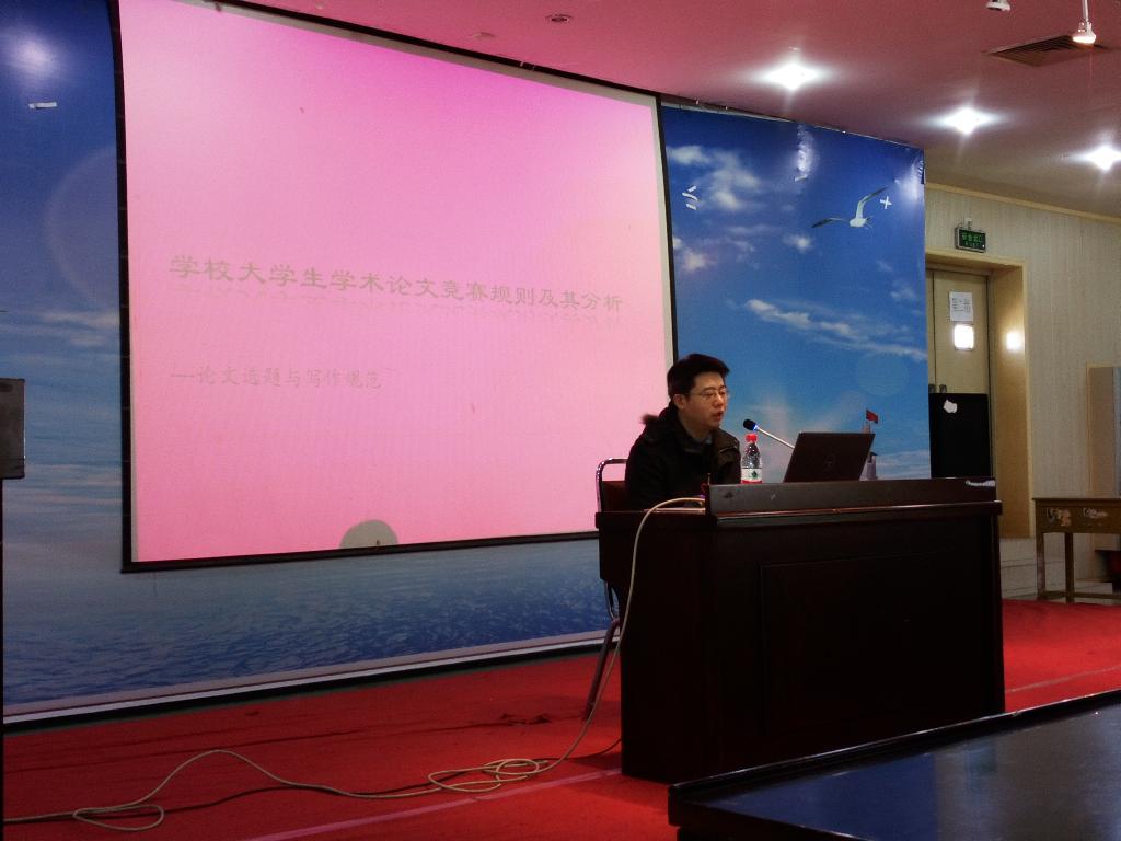 王云鹏老师从“老员工在校实践活动”入手,阐述了论文写作对于老员工的重要性,他谈到论文写作是对所学知识的整理、对知识体系的填充、对综合能力的锻炼。随后,他强调了论文写作不能沦为形式主义,论点、论据、论证要充实并具有说服力;选题要切合实际,紧抓社会热点,立足于探讨具体问题;查找资料不仅可以采用查阅纸质书籍的传统方式,还可以求助于百度学术、知网等互联网新平台。最后向我们展示了两篇获得过省级奖项的论文,并进行了针对讲解。在王老师的讲解中我们对于老员工学术论文竞赛规则也有了初步的了解。