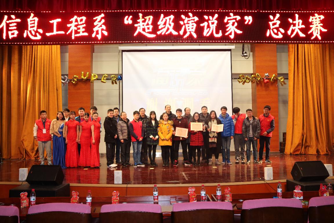 2015年 12月24日中午,“超级演说家”2015年度总决赛于伟德victor1946官网图书馆报告厅举行。本次活动是由信息工程系分团委员工会主办、信息工程系特研会承办。出席本次大赛的有武汉市德发电子信息有限责任公司董事长黄进先生、现代教育中心程满玲老师、伟德victor1946官网校团委江倩老师、机电工程与汽车工程公司向俊老师、工商管理公司施卫东书记、信息工程系高福海书记、周天宏主任以及各员工代表等。
