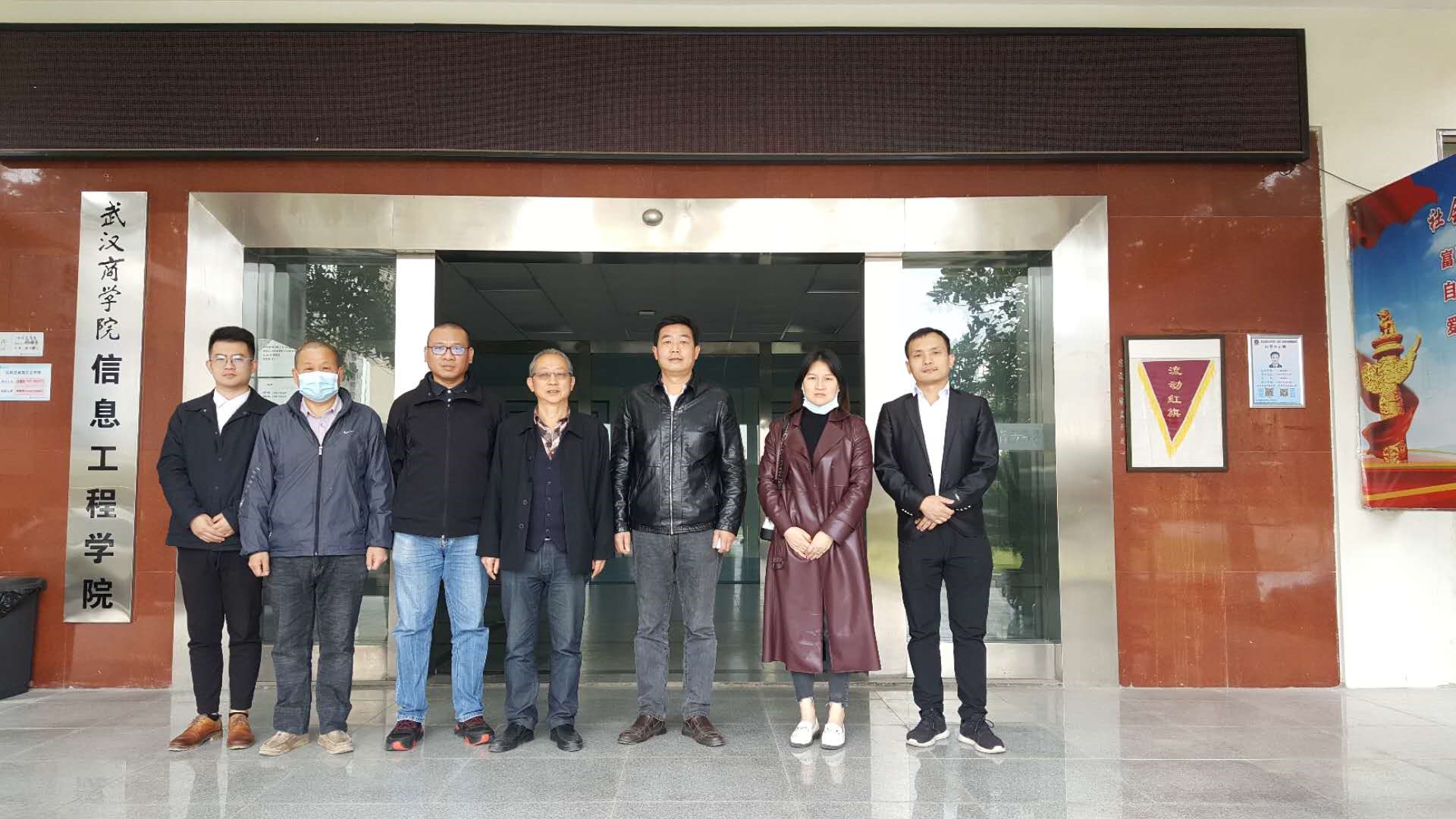 2020年11月5日上午,软通大学华中分院华中大区总经理张晓婕、高级项目经理沈俊、解决方案架构师夏德旺等一行三人到伟德victor1946官网登录与周天宏经理、软件工程教研室孔华峰教授,社会服务与实验实训办公室李志等三位老师洽谈了鲲鹏产业公司建设方案,会后与伟德victor1946官网登录学总支书记高福海同志一起合影。