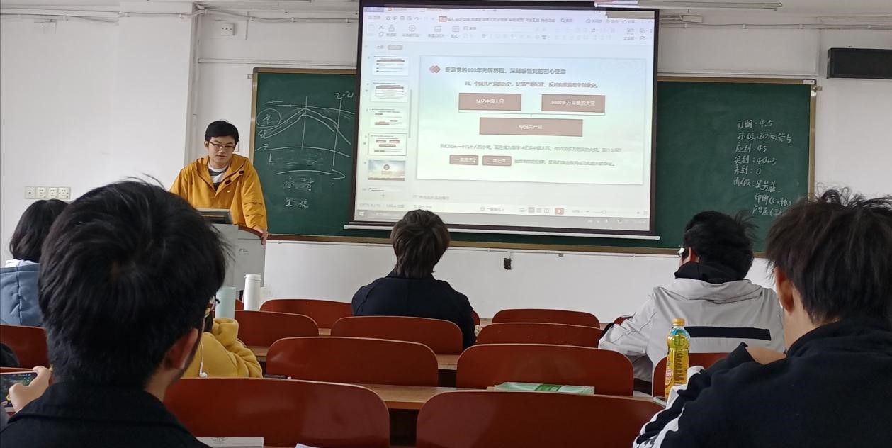 18物联网工程一班唐欣邦以“党员的初心”为主题,首先讲述了自己入党的初心,然后重温党的100年历程,让我们深刻的感悟了党的初心使命,接着阐述了我们该如何践行初心使命,那就是必须担当作为,最后,唐欣邦带领全体入党积极分子朗读入党誓词,让我们更加体会到了党的初心。我们也要将党章永记于心,初心不改使命在肩,要有新担当,新作为。