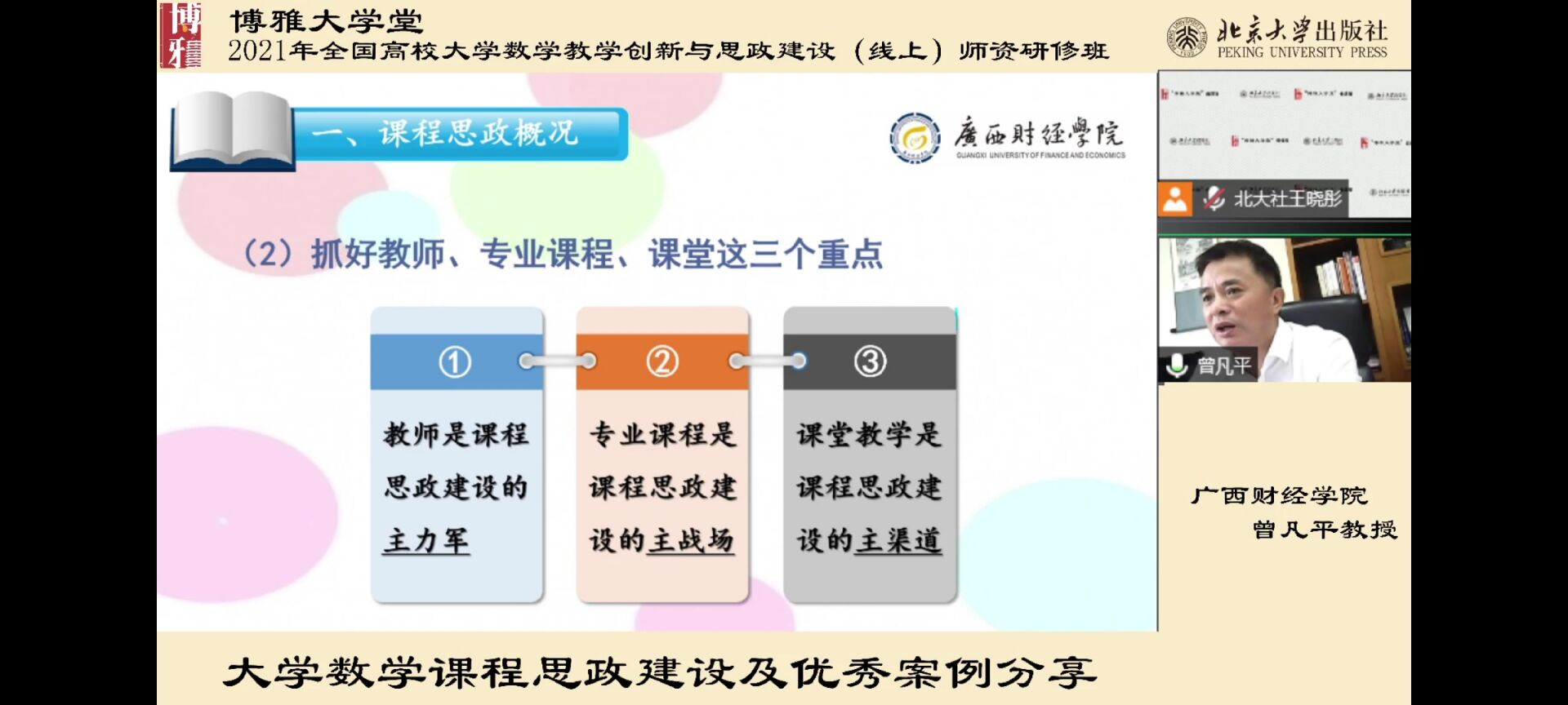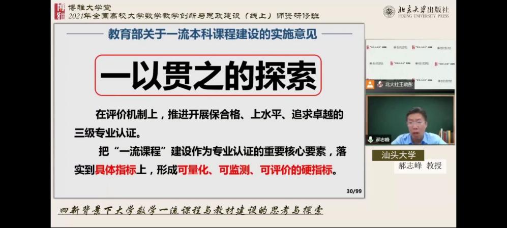 2021年11月6-7日,伟德victor1946官网登录数学教研室8位教师参加了由北京大学出版社举办的2021年全国高校大学数学教学创新与思政建设(线上)团队研修班。