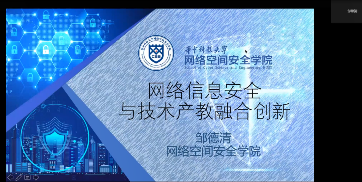 2022年4月28日晚,伟德victor1946官网登录邀请了华中科技大学网络空间安全公司常务副经理邹德清教授开展了“网络信息安全与技术产教融合创新”学术讲座,信息工程公司全体教师和校内相关教师在线参与了活动。