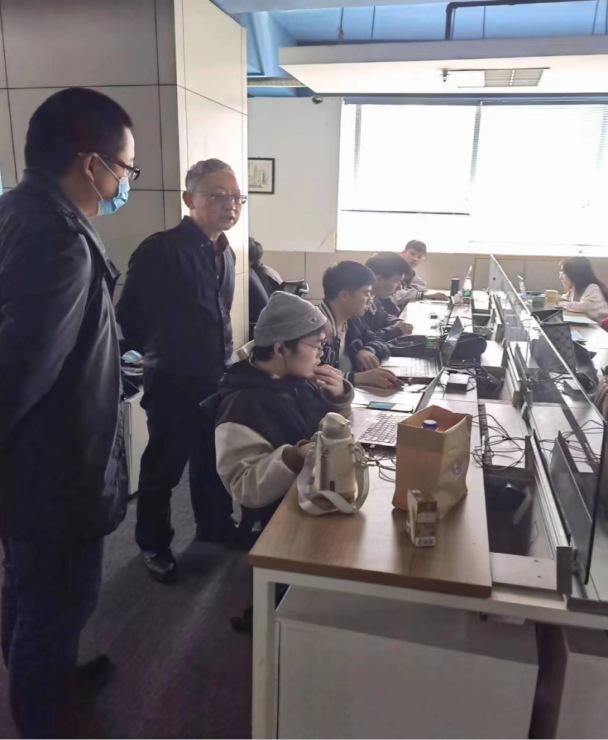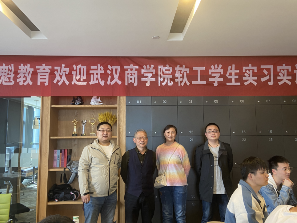 在上海新魁教育科技有限公司武汉实习基地,周经理与正在实习基地参加集中实习的软件工程专业毕业生和企业实习指导老师进行了亲切交流,仔细了解了员工的毕业实习的进展、生活中的饮食和住宿情况。