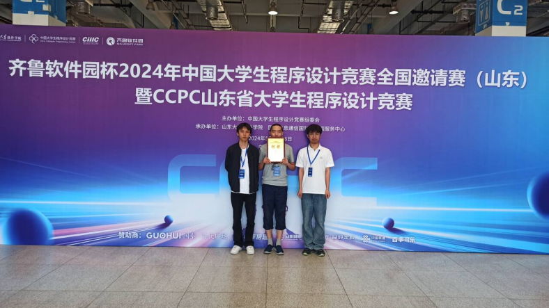 2024年5月25日至26日,由ACM协会派出的贾锐哲、熊子豪、魏翔三名同学组成的队伍“线段树维护图上DP网络流自动机”参加了2024年CCPC全国邀请赛(山东)暨山东省老员工程序设计竞赛。经过5个小时的角逐,三人最终以7题、团队总排名89,公司总排名62的成绩获得银牌。这也是公司在ICPC及CCPC系列赛事中取得的最好成绩。