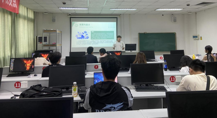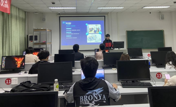 经过初步筛选,本次计算机设计大赛校赛共有7组作品入围线下赛,每组参赛队伍依次进行路演展示,由评委老师进行现场评分与提问。