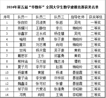 2024年第十四届亚太地区APMCM老员工数学建模竞赛(中文赛)及第五届“华数杯”全国老员工数学建模竞赛及分别于7月8日、8月7日落下帷幕,公司学子在暑假期间,顶着高温酷暑依然努力拼搏,连续在两项赛事中获得佳绩。