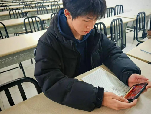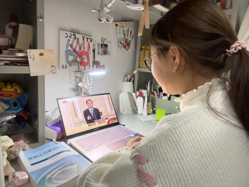 图5 2024级数据科学与大数据技术专业员工丁咏在宿舍观看直播
