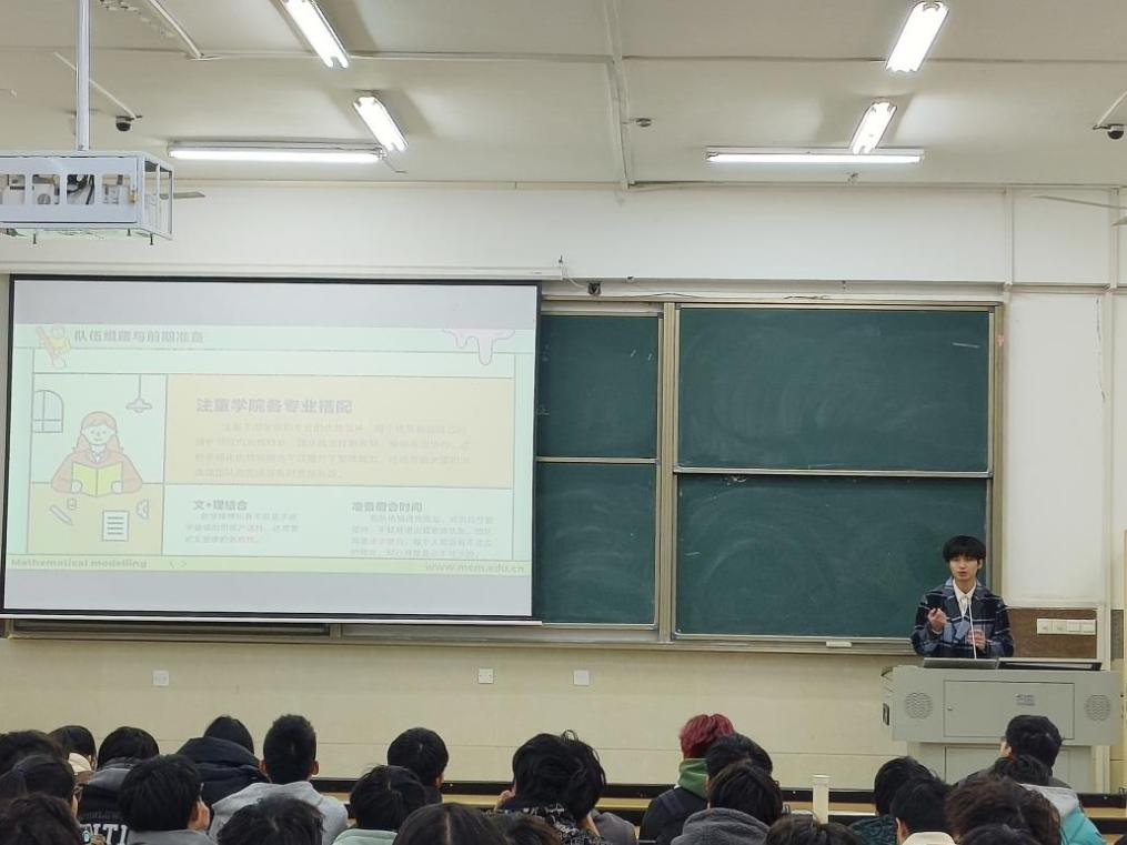 三位学长从队伍结构、辅助工具、比赛心态等多个维度为初出茅庐的新生们讲解,现场的新生会员均表示收获颇多。相信他们将明白在数学建模这条道路上该如何走、怎样走。最后就是协会指导老师李昭敏老师发言,他们对获奖队伍表示祝贺,并对新生提出了殷切的期望。晏丽霞老师也对大家提出了严格要求:“目前AI工具对学习有很大的帮助,在建模时可以借鉴,但不要过度采用网上的思路和见解,以免造成雷同”。今年的数学与建模协会硕果累累,明年的数学与建模协会也将再接再厉!取得更好的成绩。