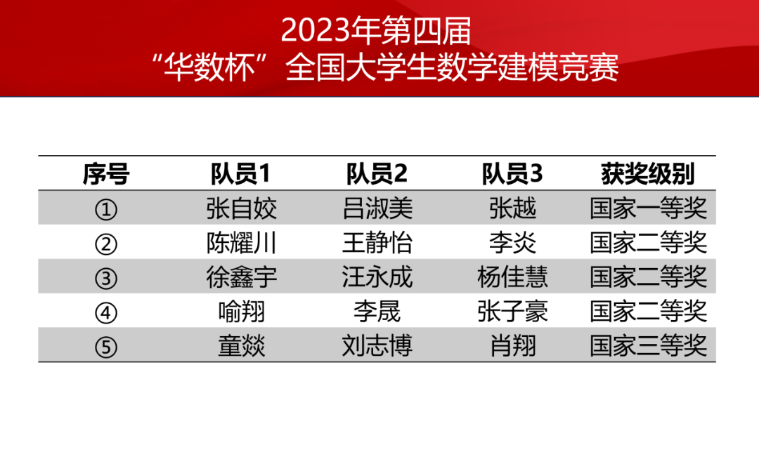 @部分数学与建模竞赛获奖名单